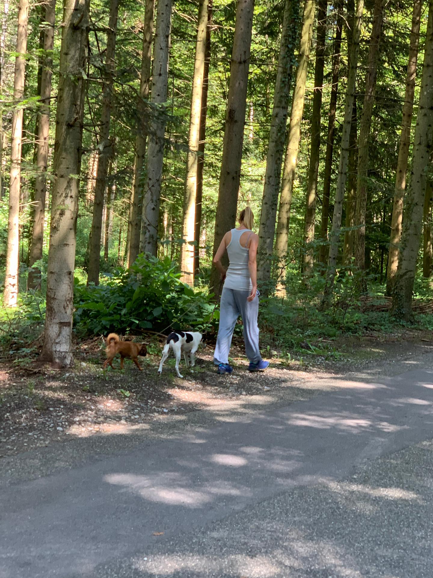 Ansonsten alles prima. Am Ende hatten wir fast alle Hunde gleichzeitig draussen und die eine Teilnehmerin mit 2 grossen und kräftigen Hunden, welches sich noch 2 Stunden vorher wohl kaum geträumt hätte, in dieser alles anderen als reizarmen Umgebung mit beiden Hunden gleichzeitig zu laufen, bewegte sich dann völlig souverän und kreuzte sogar andere Hunde!